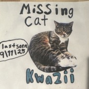Lost Cat, Alert #91026 Kwazii missing near Mayfield Lane, Sycamore St, 116th street, Zionsville46077