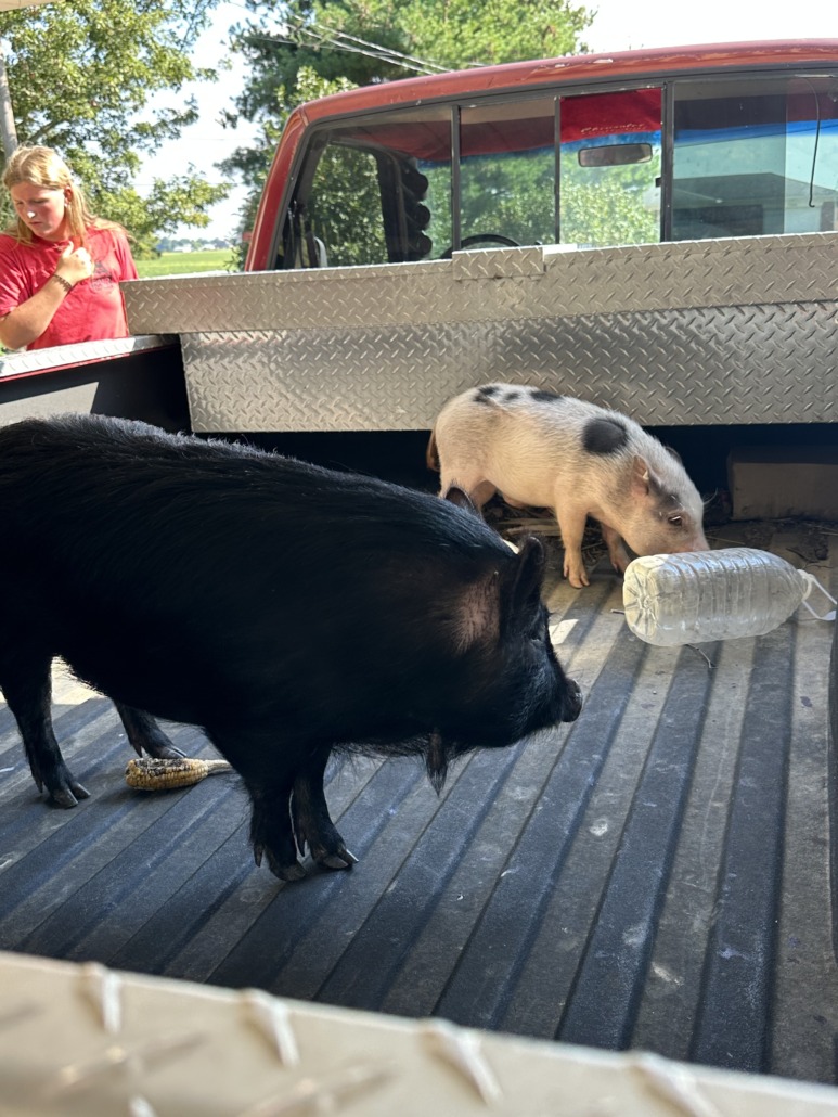 Found 2 potbelly pigs in NE Johnson county.