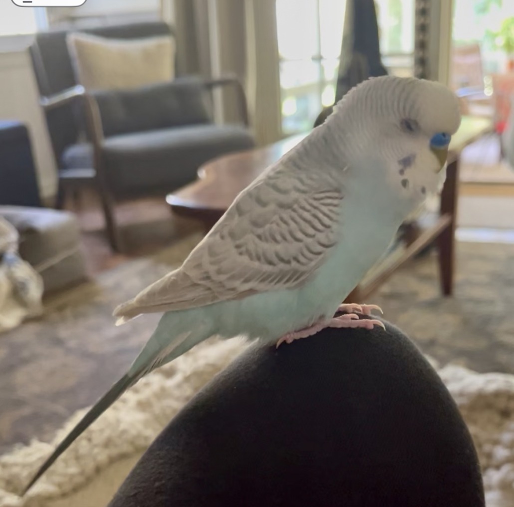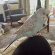 Casper is a light blue budgie parakeet who is tame. He may come to you if you whistle and say. “”C’mere”