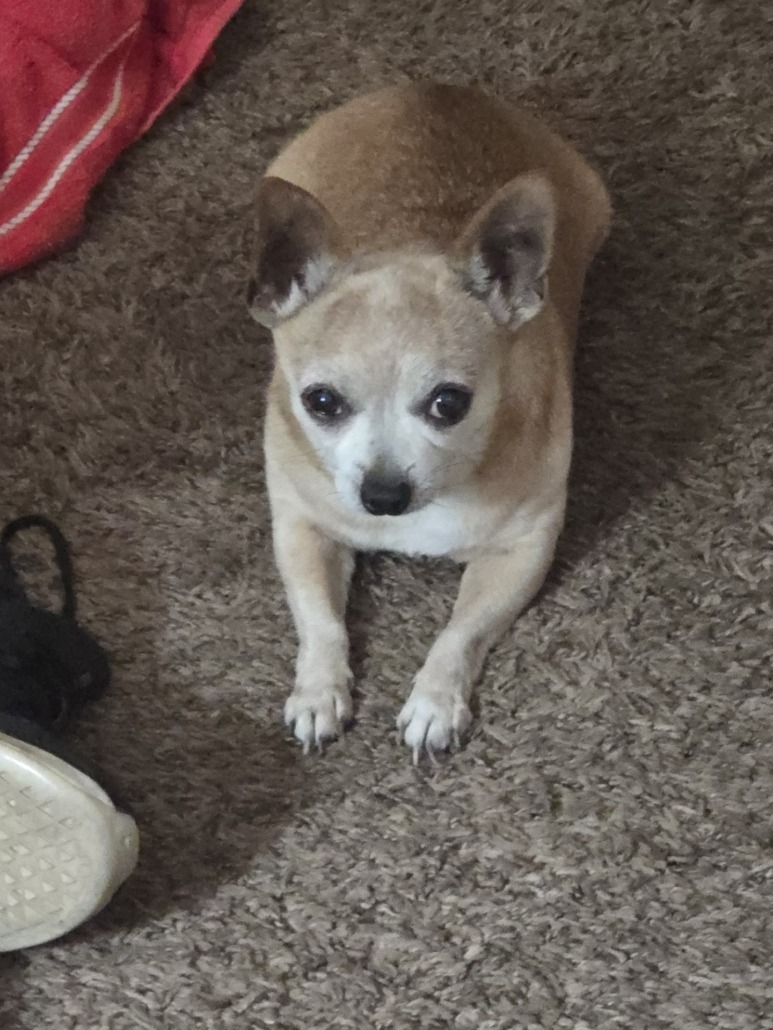 Lito is a Chihuahua/Pincher mix. Tan/Light Brown and White. He is blind in one eye. He has a few ailments.