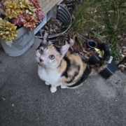 Extremely sweet calico cat. Clearly has been someone’s pet due to temperament, but covered in fleas and has a wound on its head by its left ear. Spotted at the corner of 57th and Ralston. Knocked on the door of the house it was sitting by, but no answer.