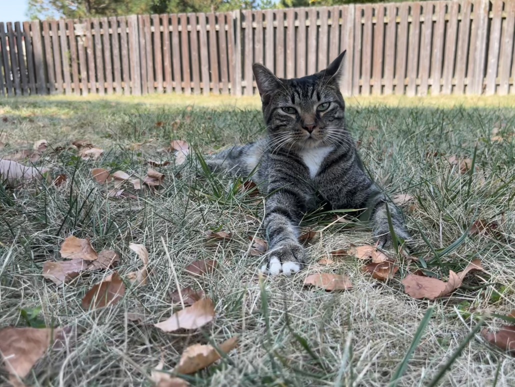 Very friendly tabby cat found. Maybe about 8 lbs, mostly gray and black tabby with some patches of white. She’s also quite vocal. She followed our son home from the woods near the Robin Run senior living community and begged to come inside, leading us to think that she’s not usually an outdoor cat. Please provide proof of ownership when contacting.