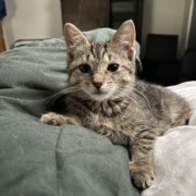 Little girl kitty needs a forever home, approximately 10 weeks, she is very sweet! I am just a foster, I have too many pets of my own or I would keep her.