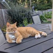 Orange tabby with some white on paws.