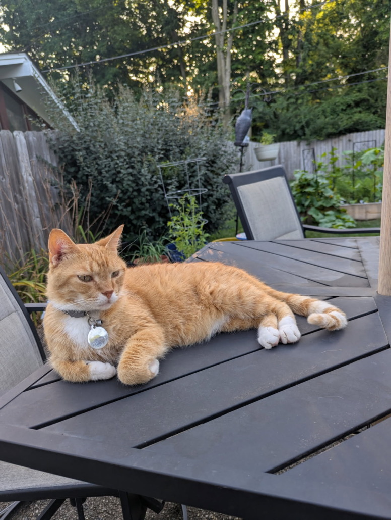 Orange tabby with some white on paws.