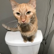 Thunder is a lighter orange, neutered male. He has yellow/green eyes, they change with his mood each day. He is microchipped to me.