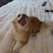 Small female Chihuahua or Chihuahua mix. Very sweet, golden brown fur and white fur