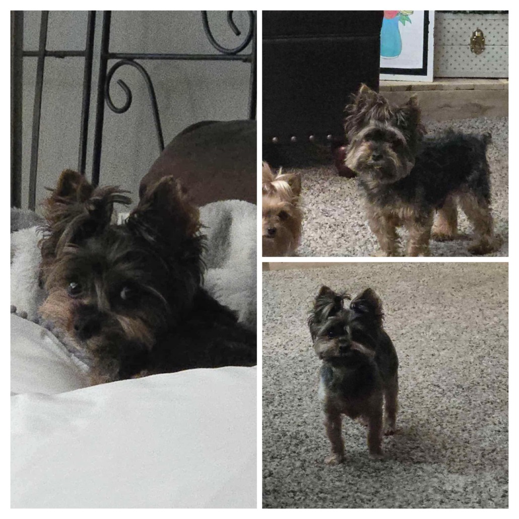 Parker is around 5 pounds and is brown with black and beige. Parker was picked up at the intersection of Thompson Road and 31 by a white van.