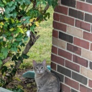 Grey and white tabby. Maybe 8 months old. Proof of ownership is required