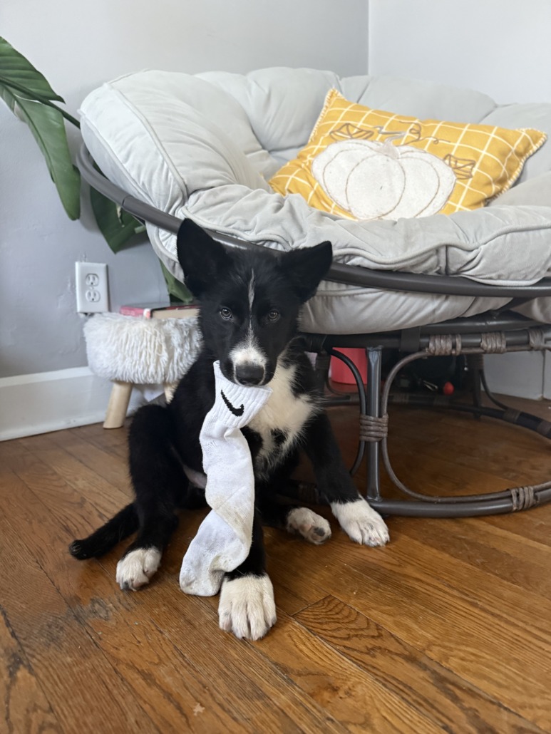 She’sa puppy about 8-12 weeks likely a border collies mix. very sweet and was very dirty, she needed a bath