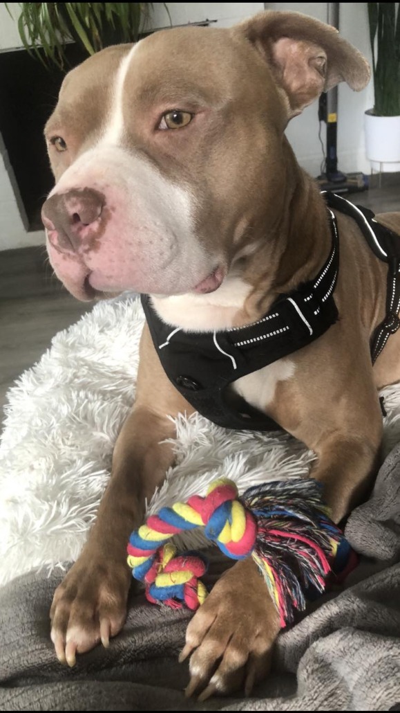 My former foster. Owner in jail and doesn’t know where he is. Neutered. 3 Y.O. 60 lbs. Only back paws have white. Chipped at IACS. Sweet. People/dog friendly