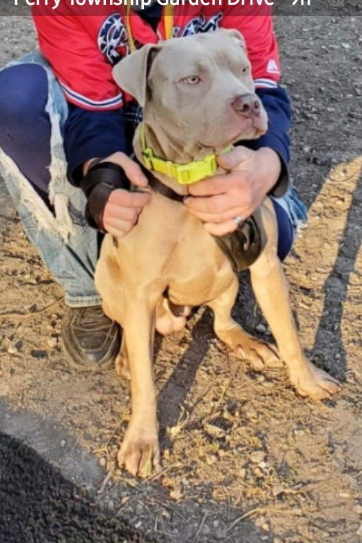 He’s a 3 year old tan male pitbull he has blonde colored eyes he was wearing a Kong harness brownish/green in color, he is very friendly with people but aggressive with other dogs please help us get him back home where he’s loved very very very much we are lost without him!!!!