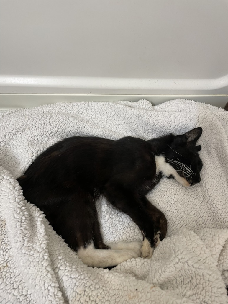 Tuxedo cat found emancipated and didn’t make it through the day. He passed away on October 5.