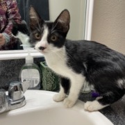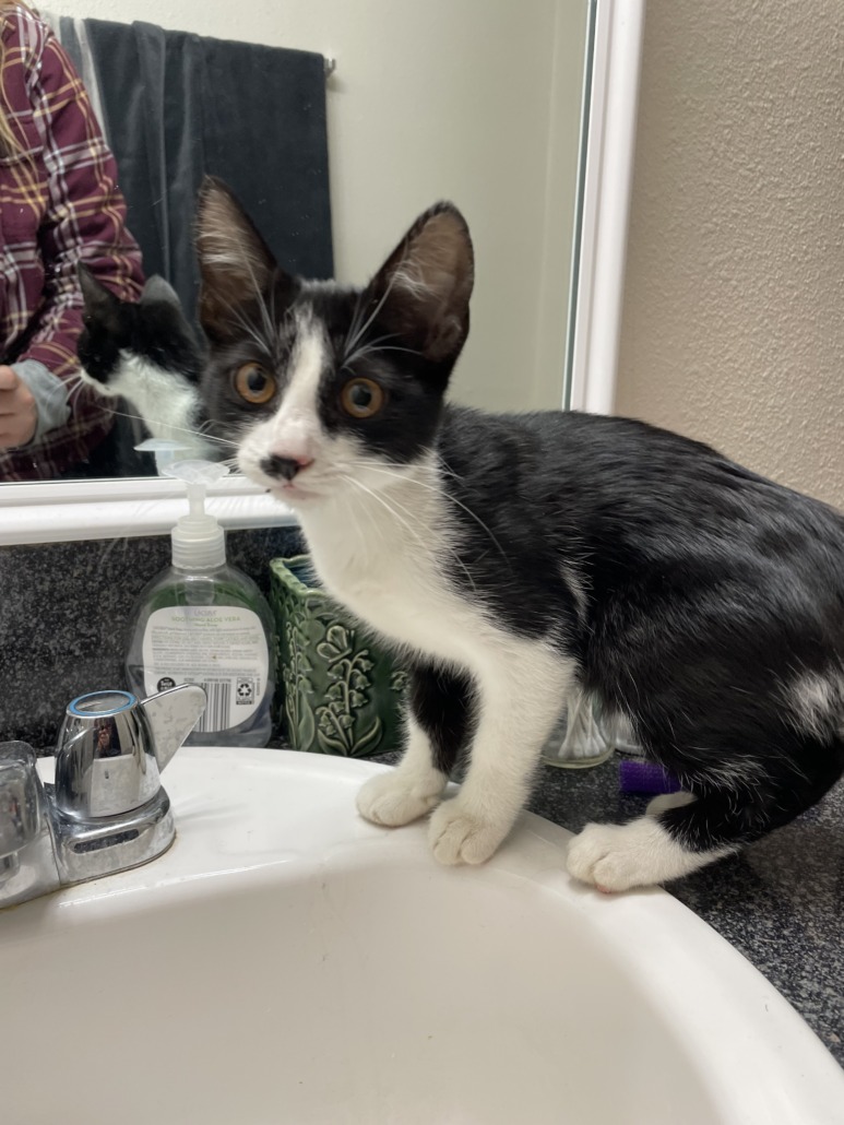 I found a small black and white kitten. If you recently lost a kitten, please message me or reply here with a description. I’d love to reunite them with their owner!