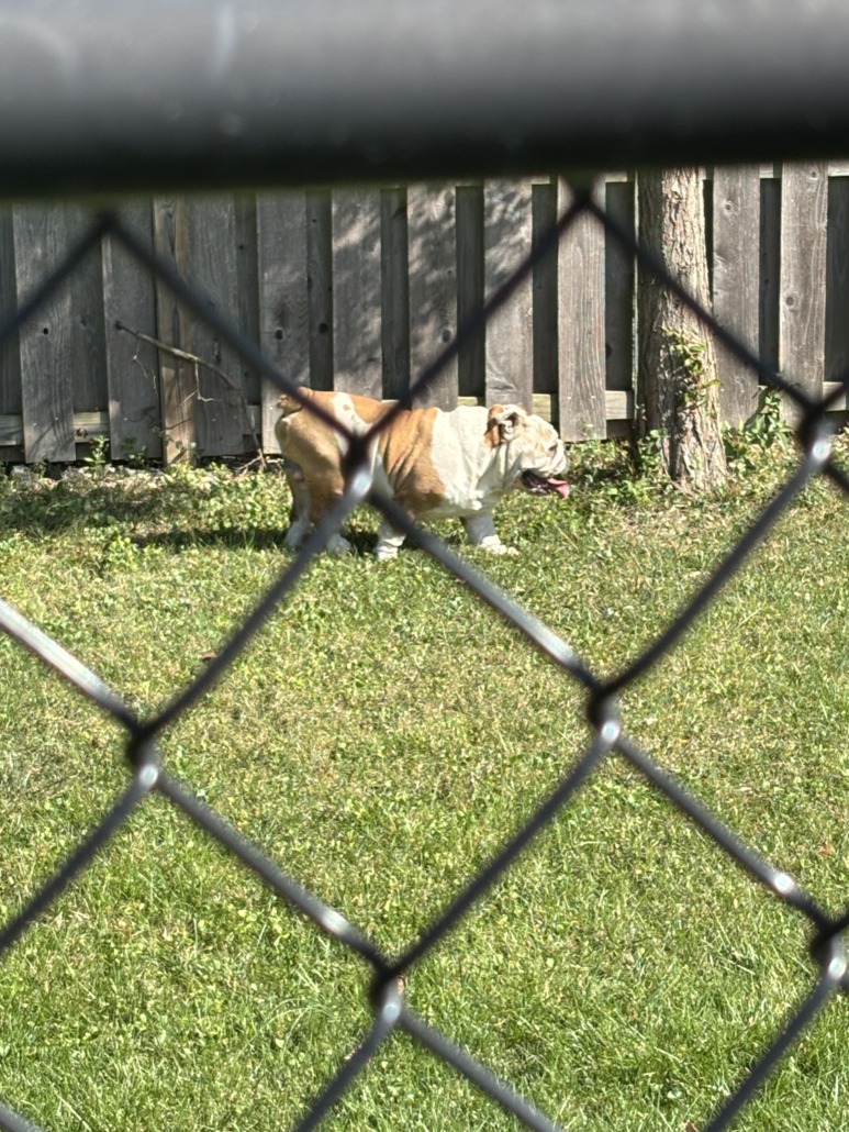 Male bulldog found in Indianapolis. Proof of ownership required.