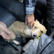 Corgi mix, very sweet female. One blue eye one brown eye. Found with another female, possibly chihuahua mix.