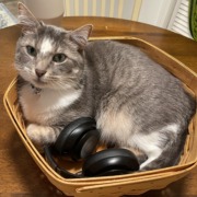 Trouble is a grey and white cat, about 8 lbs. He has a collar on. Has a white patch of white fur on the middle of his forehead and green eyes. White fur on belly and chest and paws
