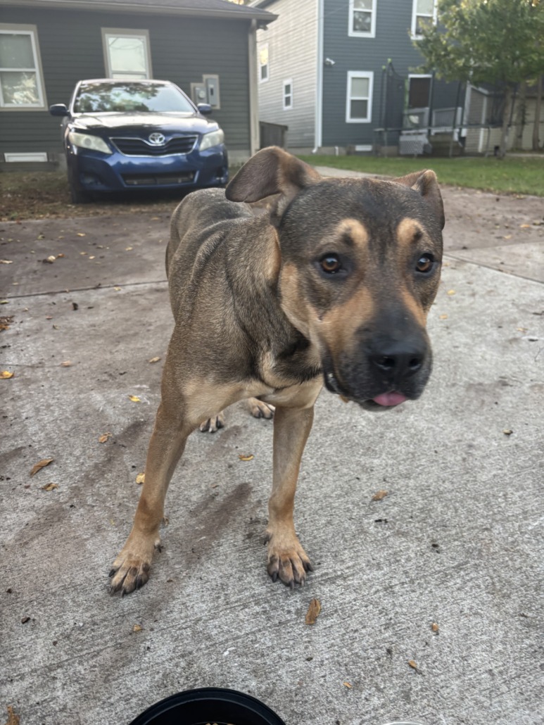 Brindle/peanut butter pit bull mix. Male not neutered.