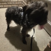 Very friendly black grey Schnauzer (?) with lighter paws and tummy found running around our community at Briarstone Villas this AM.
