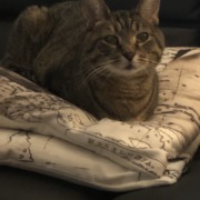 Baby bug is a very small tabby. Very active. She has been declawed (adopted that way) always indoors in a second floor apartment.
