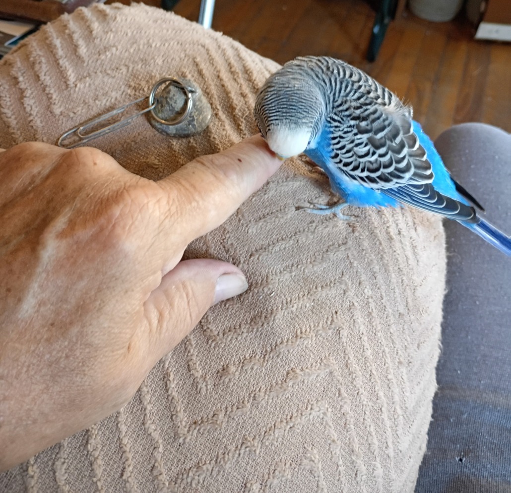 Blue parakeet with white head