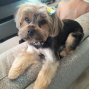 Black with tan legs. Yorkie. Has black collar on with purple heart tag with our phone #