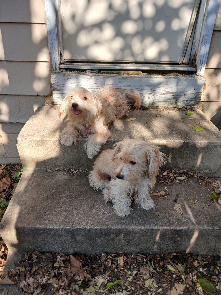 Grizzlybear and Noel are brother and sister, they both got out last night. They had their gray pet thunder vest on, collars with ID tags, they are very friendly but also protective of each other and gets along with cats, they do get car sickness.