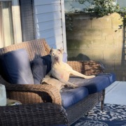 Dog spotted on my porch each morning for the last three days. I haven’t not see this dog any time in the afternoon or evening. Missing or injured eye. Seems very timid.