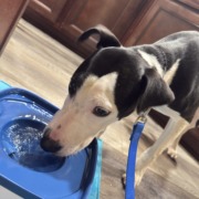 Black and white medium sized female dog. Very friendly! Proof of ownership is required.