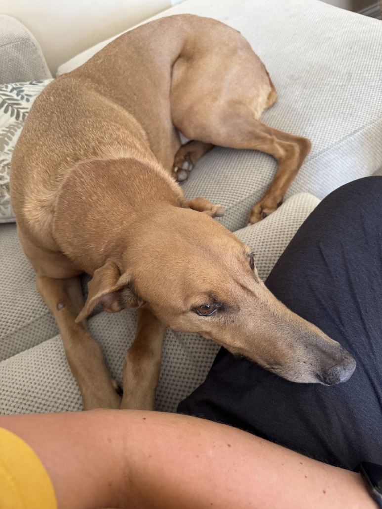 Greyhound found in a field in Fishers. Proof of ownership required.