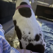 Female pit bull mix. She is mostly white with brown spotting, she has some very distinct markings in her coat, proof of ownership is required!