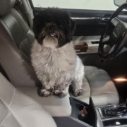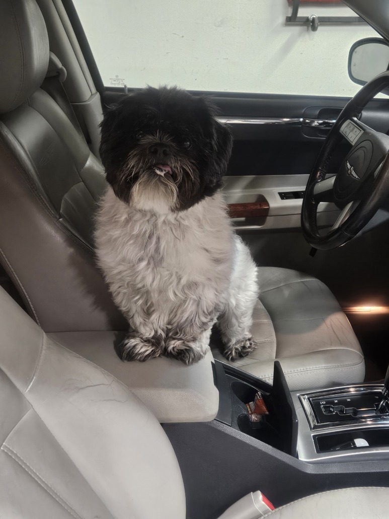 Found a male small dog on Prairie Depot near Morris. He is very scared. Has an underbite and tongue slightly sticks out. Either shih tzu or lhaso apso. Black and white. Taking to get scanned for chip when he will let me touch him. Currently trapped in my garage.