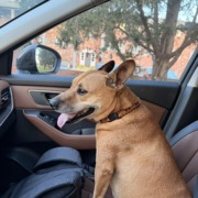 Very docile and came right up to my car during the morning rush hour, he looks very healthy, loved and cared for. Light brown/tan and has spots on his tongue like maybe a chow mix. Wearing a collar, that’s red black and yellow in design, no tag on collar