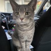 Sweet and sociable gray tabby. Distinctive gray line across his nose. Proof of ownership required