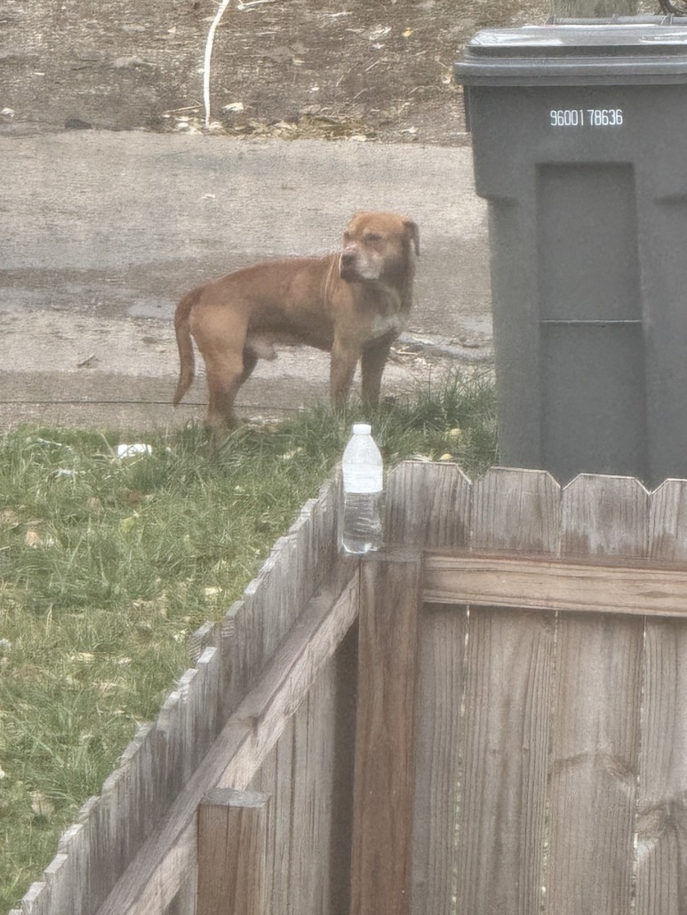 Brown, male. No idea the breed. Looked like he was limping. I tried to get outside to get him in the back yard by the time I got out there he was gone. No collar