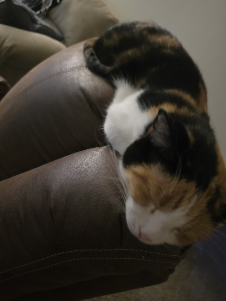 Calico small cat/kitten found outside of my apartment yesterday they were outside all morning and night and wanted to be let in so I took them in and am now looking for the owner if they have one.