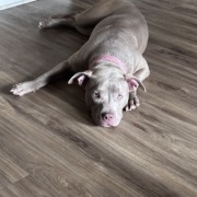 She’s a grey bully. She’s so sweet & playful. She ran out of the backyard with our other dog Xen.
