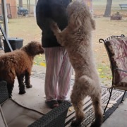 Found two dogs running around pond behind heatherwood estates and sungate. They are currently in my backyard
