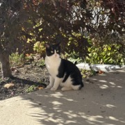 Black cat with tuxedo white, no tail!!!
