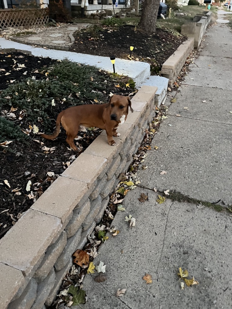 This dog is seen roaming around in our neighborhood