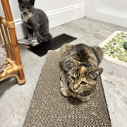 Bonded pair found at Garfield Park recycling center. Were very scared but are sweet so clearly were in a home. Brown, black and orange tabby and grey and white – both believed to be females. Proof of ownership required.