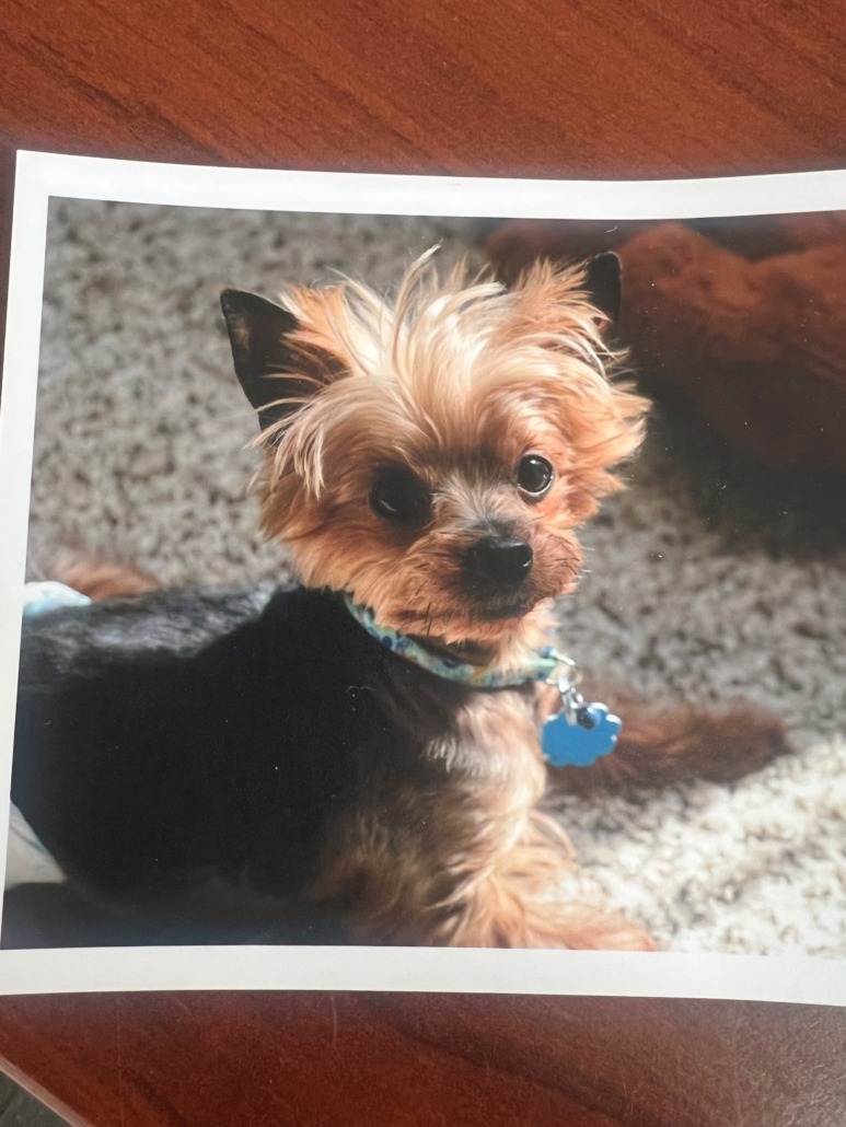 Henri is an 11 year old Yorkshire Terrier, neutered and he is microchipped. He is with his brother Hugo who is also a Yorkshire Terrier. He has a blue collar on with his rabies tag and a blue bell. He is on medicine and I will pay a reward for his safe return.