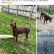 Our dog got out of his collar yesterday afternoon. He is a big brown Doberman. He is super friendly. His name is Bronx.