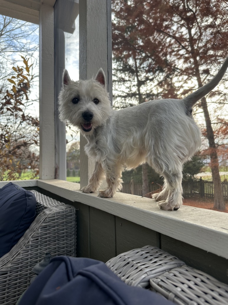 Killian is a 17 pound West Highland terrier. He was last seen in Lawrence Woods near 79th and Oakland Landon.