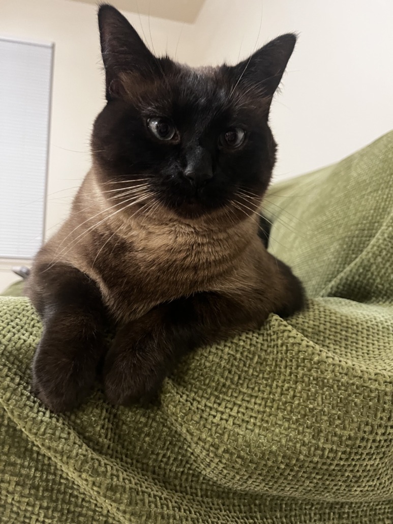 Black and brown Siamese mix with blue eyes