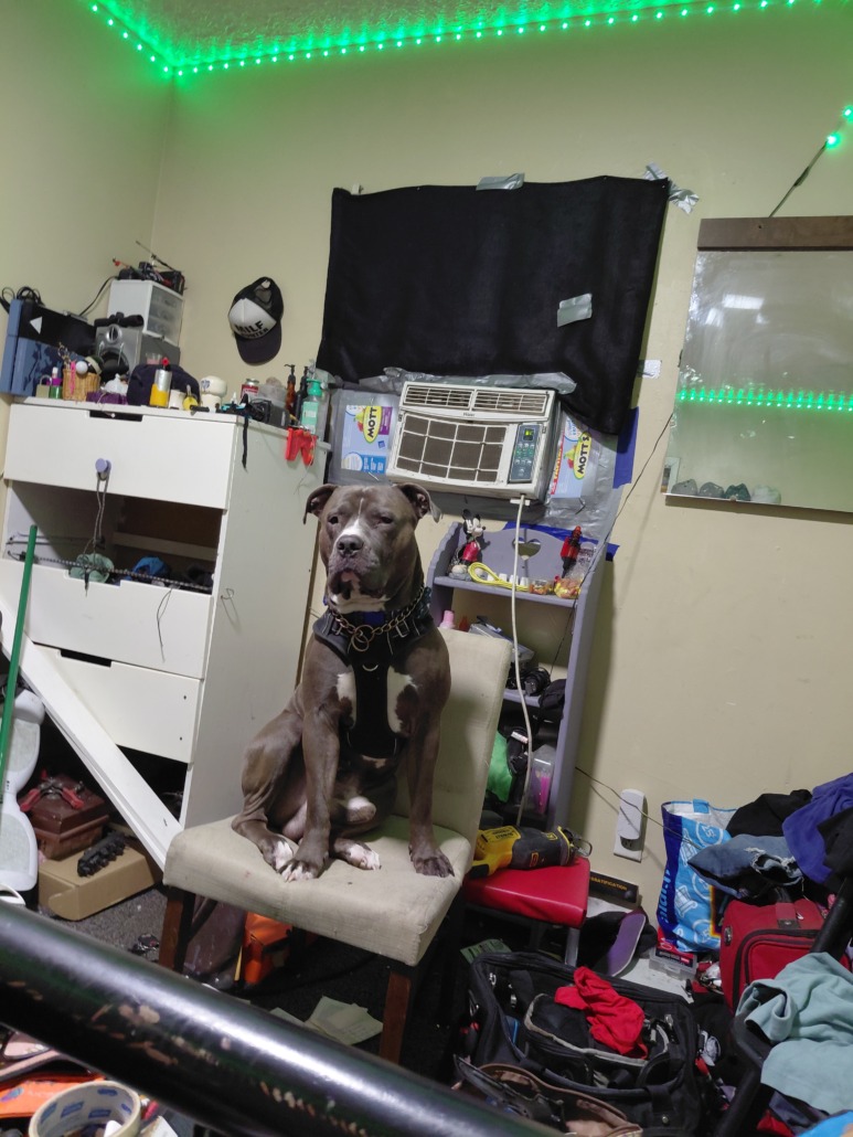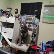 He is a large blue pit.