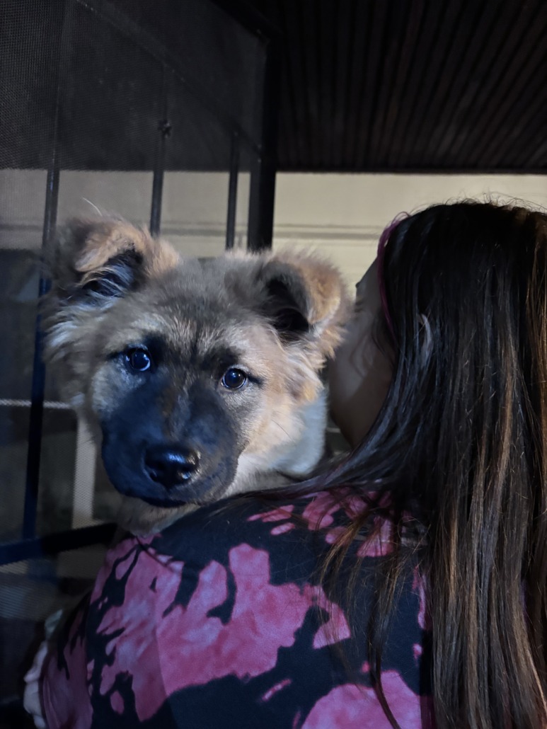 I think she is some kind of German Shepard mix. Puppy for sure, color with a broken leash on her! Proof of ownership required.