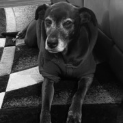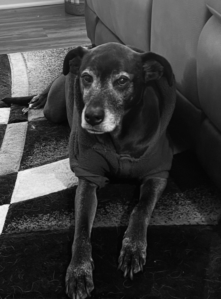 He is about 50lbs. Mostly black but a lot of grey in his face. He’s 13 yrs old and friendly but shy