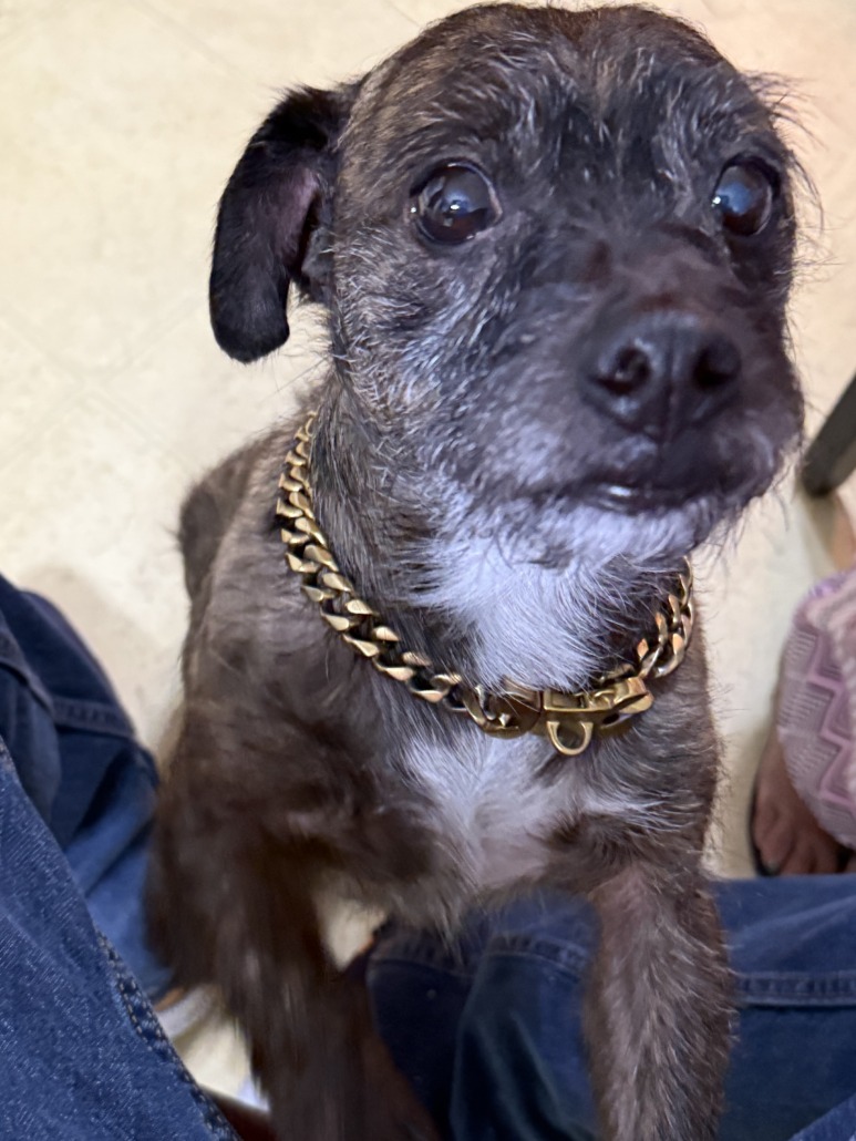 Small dog w/ gold chain very frendly 317-665-1855 around patton dr near 34 St and moller rd