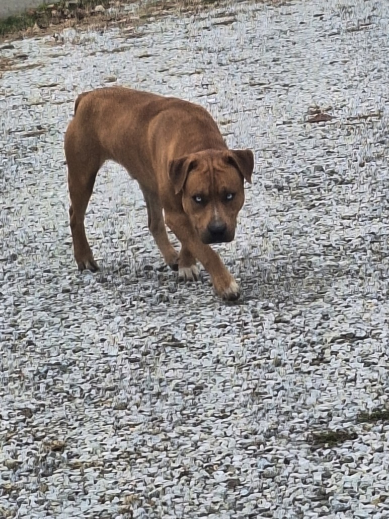 Male Dog. Red/brown short smooth coat mix breed. Crystal blue eyes. no collar. NOT neutered. wondering around Krannert Park for over a week off and on. Will not come to me.